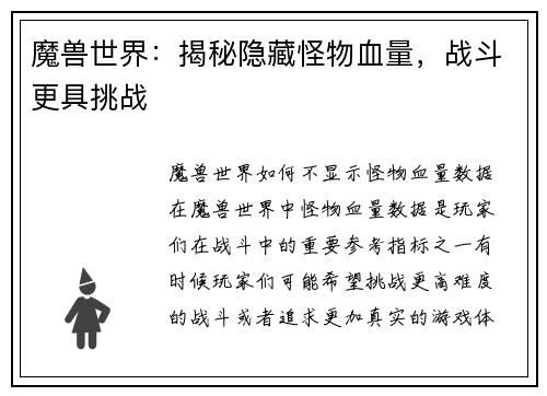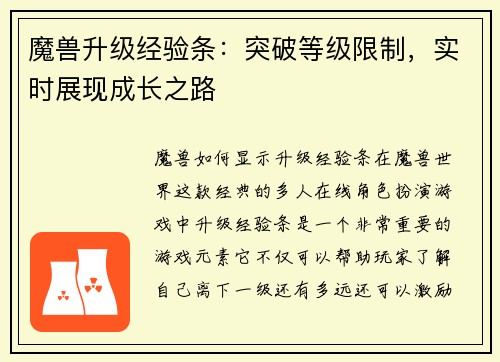 魔兽世界如何设置限额玩家数量显示 魔兽世界是一款非常受欢迎的大型多人在线角色扮演游戏(MMORPG)。为了保证游戏的稳定性和流畅性,游戏开发商需要设置限额玩家数量显示。本文将从以下方面对魔兽世界如何设置限额玩家数量显示进行详细阐述。 1. 限额玩家数量的重要性 限额玩家数量的设置对于魔兽世界的运营非常重要。限制玩家数量可以确保服务器的稳定运行,避免因为过多的玩家同时在线而导致服务器崩溃或延迟。限额...