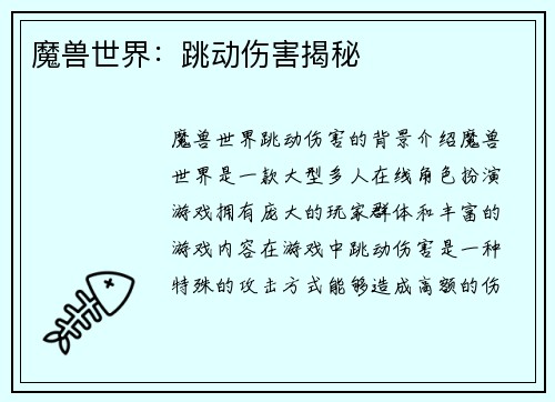 1. 选择合适的职业和专精 在魔兽世界中,每个职业和专精都有其独特的特点和优势。要提高在副本中的伤害输出,首先要选择一个适合自己玩风格和喜好的职业和专精。不同职业和专精在输出伤害上有不同的特点,比如战士专精狂怒可以提供高爆发伤害,法师专精火焰可以提供高持续伤害。选择合适的职业和专精可以最大化自己的输出潜力。 2. 熟悉副本的机制和敌人的特点 在进入副本之前,要先了解副本的机制和敌人的特点。不同的副...